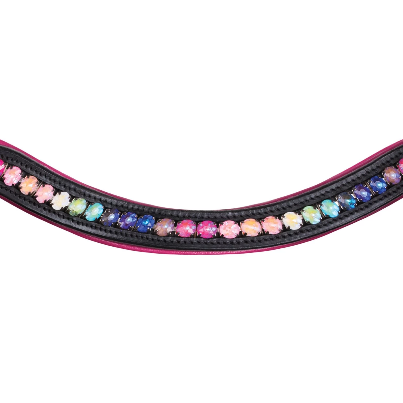 The Waldhausen Pinky Star Bridle is the perfect choice for ponies who are looking to add some colour and bling to their equipment lineup. Features a curved browband with coloured rhinestones, a flash noseband, and nickel-plated iron hardware. Complete with 16mm continental reins.