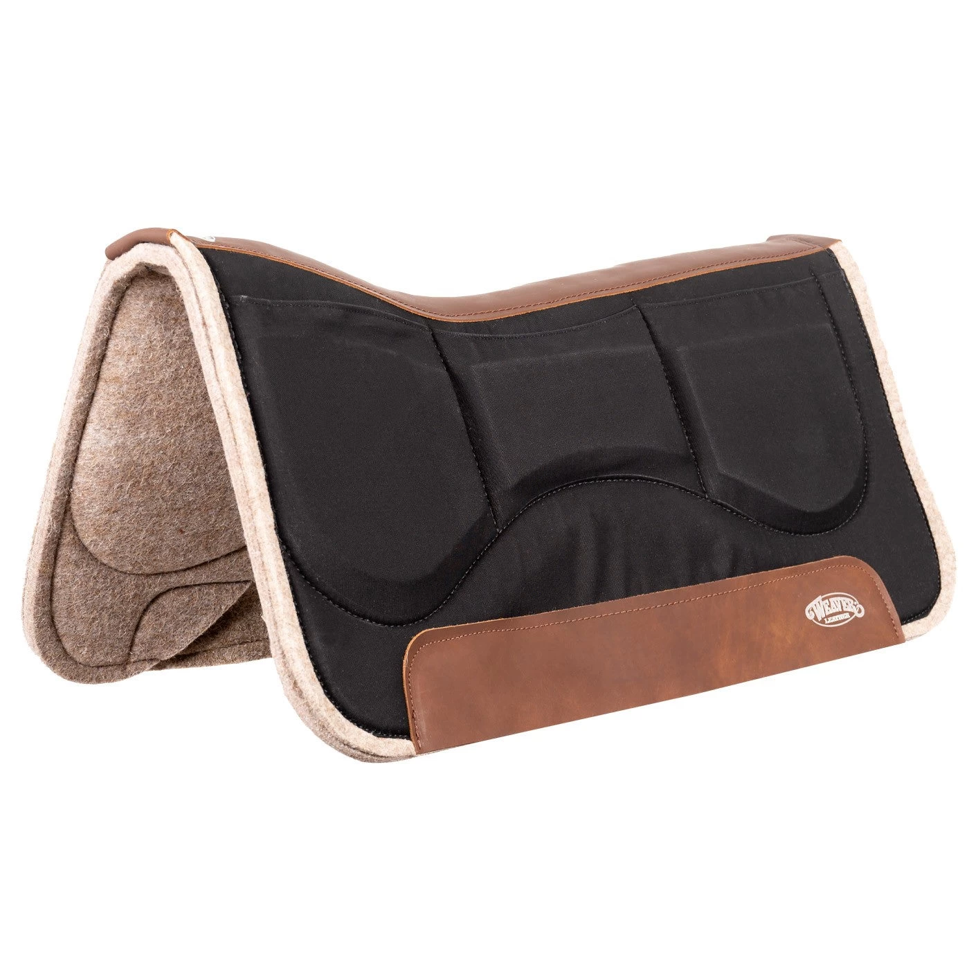 The Weaver Wool Blend Felt Shim Western Pad includes EVA foam removable shim inserts to help correct saddle fit and confirmation issues. Features a shock absorbing contoured shape for a close contact feel with a moisture-wicking wool blend for all-day comfort.