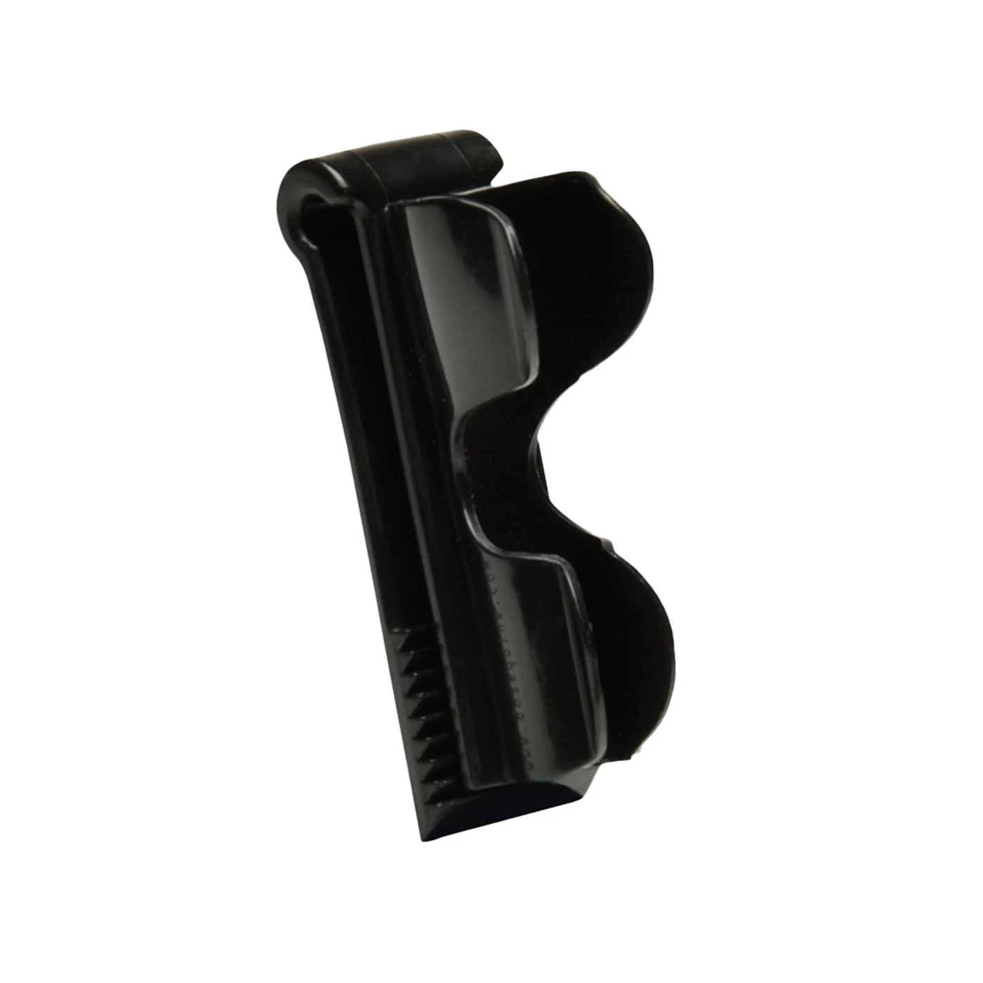 Safely stow your whip while riding when your crop, whip or bat is not needed. This compact and discreet two chambered clip slides into place over the top of your boots or half chaps. When your whip is no longer needed, snap it into the whip clip and continue your ride. This accessory keeps your whip stowed safely, securely and near at hand.